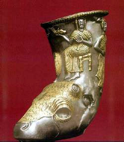 1. vasele cu doua torti, adesea suprainaltate, cu picior inelar, cu decor realizat prin lustruire, care sunt de origine celtica